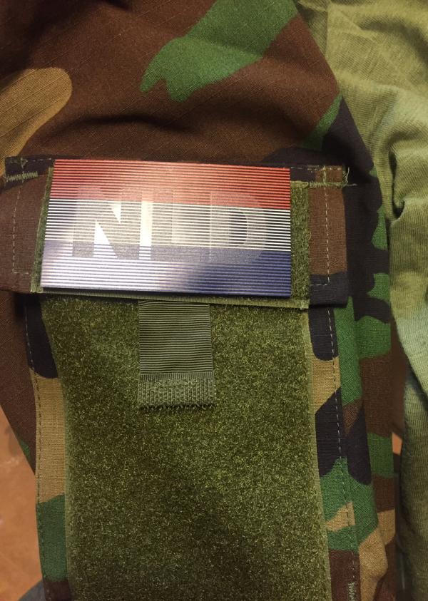 Nederlandse vlag voor IR identificatie. Bij daglicht zichtbaar als Nederlands vlag. s'nachts met IR zichtbaar als NLD patch. Afmeting: 5cmx9cm