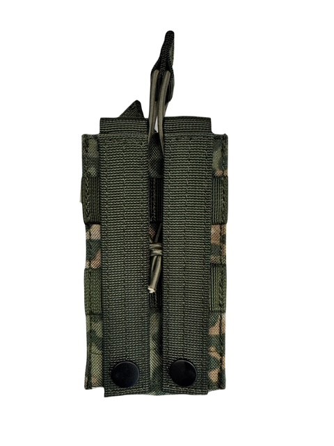 Modulaire tas voor 1x twee C7/C8/M4 houders, met tussenschot om geluiden te voorkomen. Voorzien van bungee sluiting en Molle.